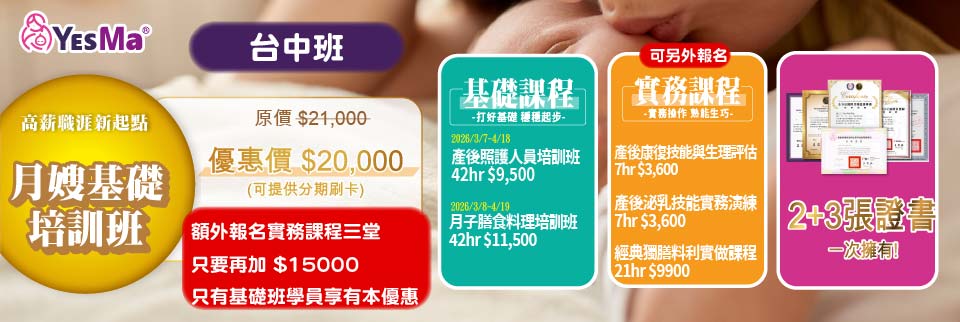 115年度『第42期-到府坐月子專業人員培訓班-產後照護人員培訓班』台中(週六) 3/7開課