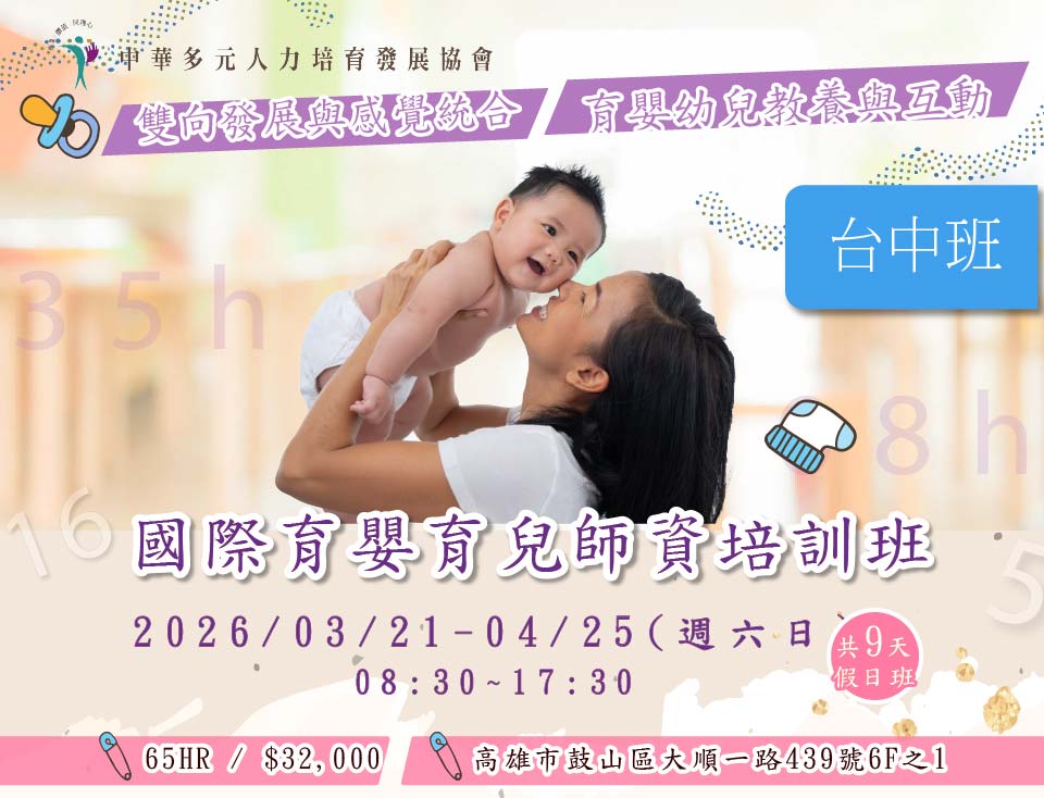 114年度『第40期-到府坐月子專業人員培訓班-產後照護人員培訓班』台中班(週六) 4/12開課上課時間:2025//4/12.19.26、5/3.10.17( 每週六)...